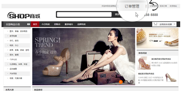1、進入本網(wǎng)站首頁,在右上角“訂單管理”中可查詢您的訂單;